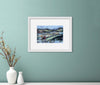 Mixed media work on pastel paper, December at Sharpham Marsh. The reed beds on the river Dart sound incredible in the Winter winds. This view is enjoyed by many walkers as the Sharpham estate built some lovely seats.